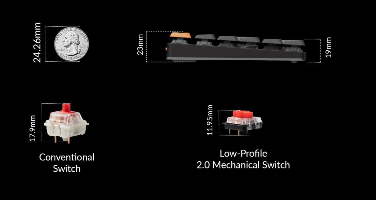 Ο καινοτόμος μηχανικός διακόπτης Keychron Low-Profile 2.0 είναι 33% λεπτότερος από τους συμβατικούς διακόπτες κανονικού προφίλ και καθιστά το Keychron K3 Version 3 ένα από τα λεπτότερα ασύρματα μηχανικά πληκτρολόγια στον κόσμο. Ενώ εξακολουθεί να προσφέρει μια διακεκριμένη απόκριση αφής.