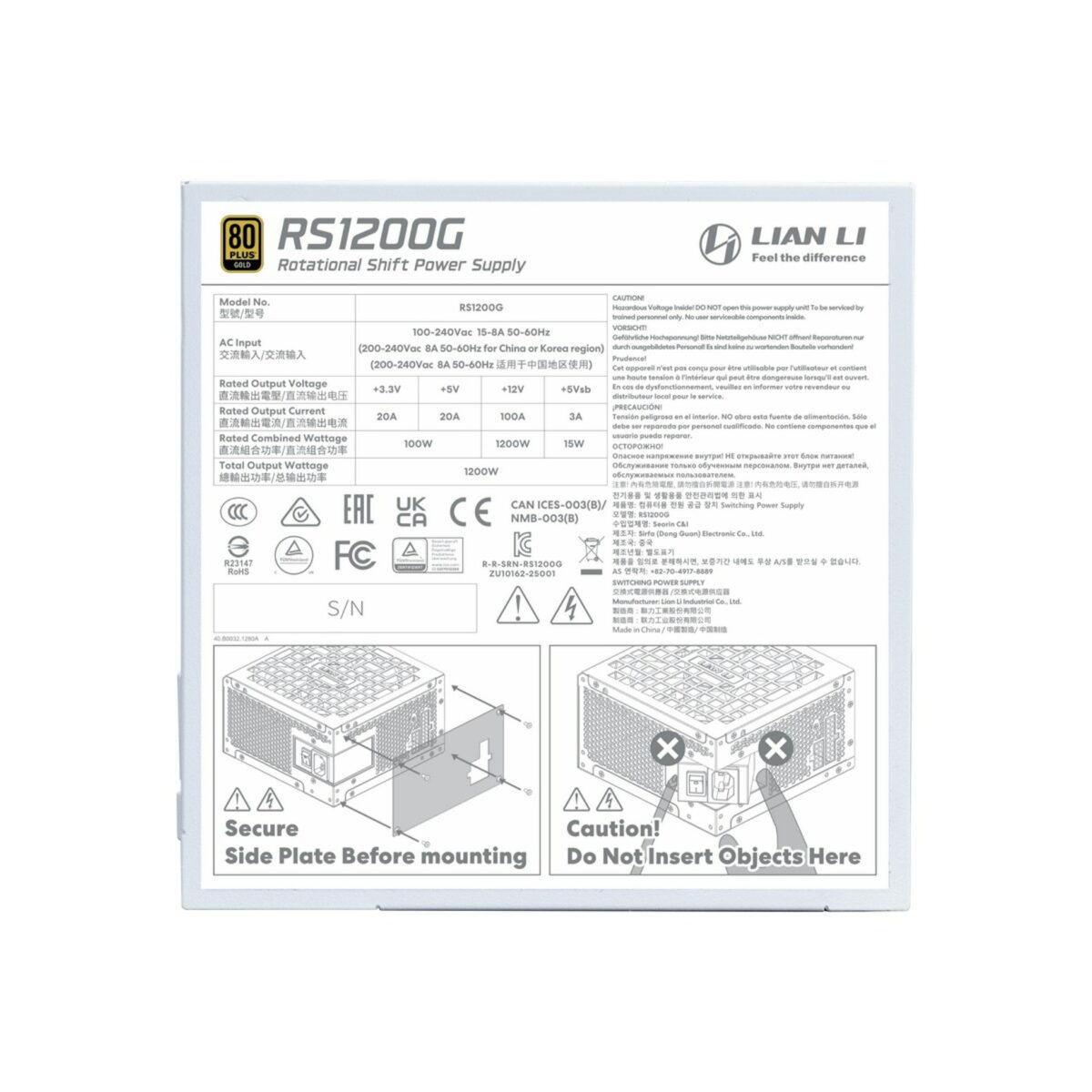Lian Li RS1200W White – 1200 Watt 80+ Gold PSU – 12V-2×6 Colored Cable – RS Hub – Fully Modular