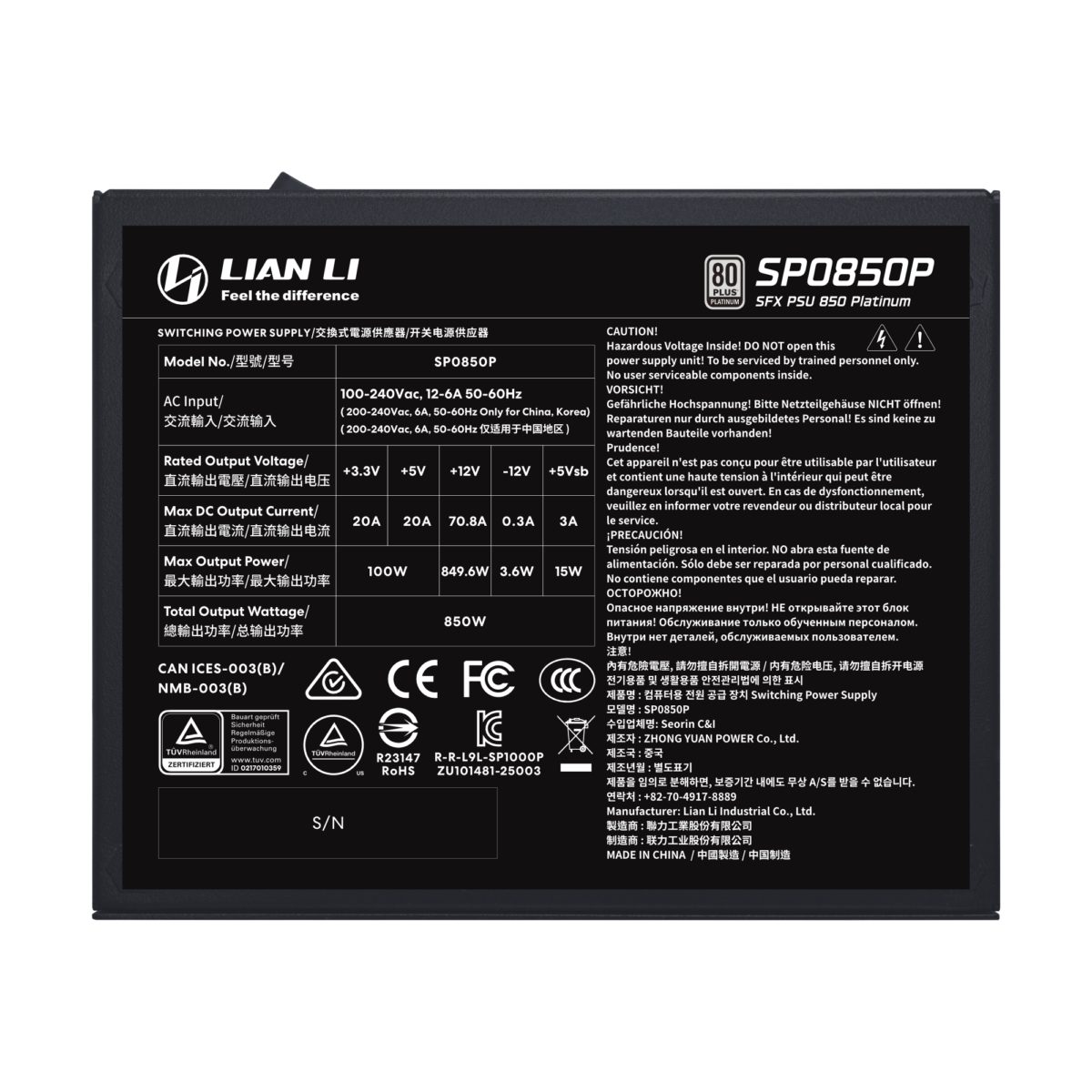 LIAN LI SP0850P Black – 850W 80+ Platinum PSU – 10 Years Warranty – 12V-2?6 – Japanese Capacitors