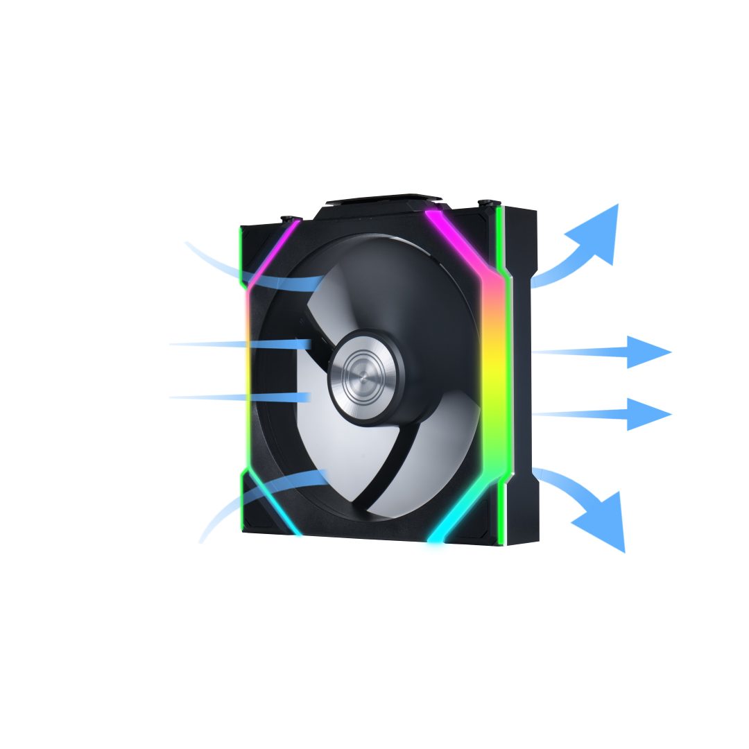 Η ασύρματη σειρά UNI FAN SL δεν παρουσιάζει μόνο καινοτομία στη λειτουργικότητα, αλλά ενισχύει και την οπτική της απήχηση. Κάθε πλευρά του ανεμιστήρα διαθέτει τώρα μια πρόσθετη λωρίδα φωτός, αυξάνοντας τον συνολικό αριθμό των LED σε 40. Αυτό επιτρέπει τις ρυθμίσεις φωτισμού σε δύο ζώνες, προσφέροντας μια πιο δυναμική και ευέλικτη οπτική εμπειρία που ξεχωρίζει πραγματικά.