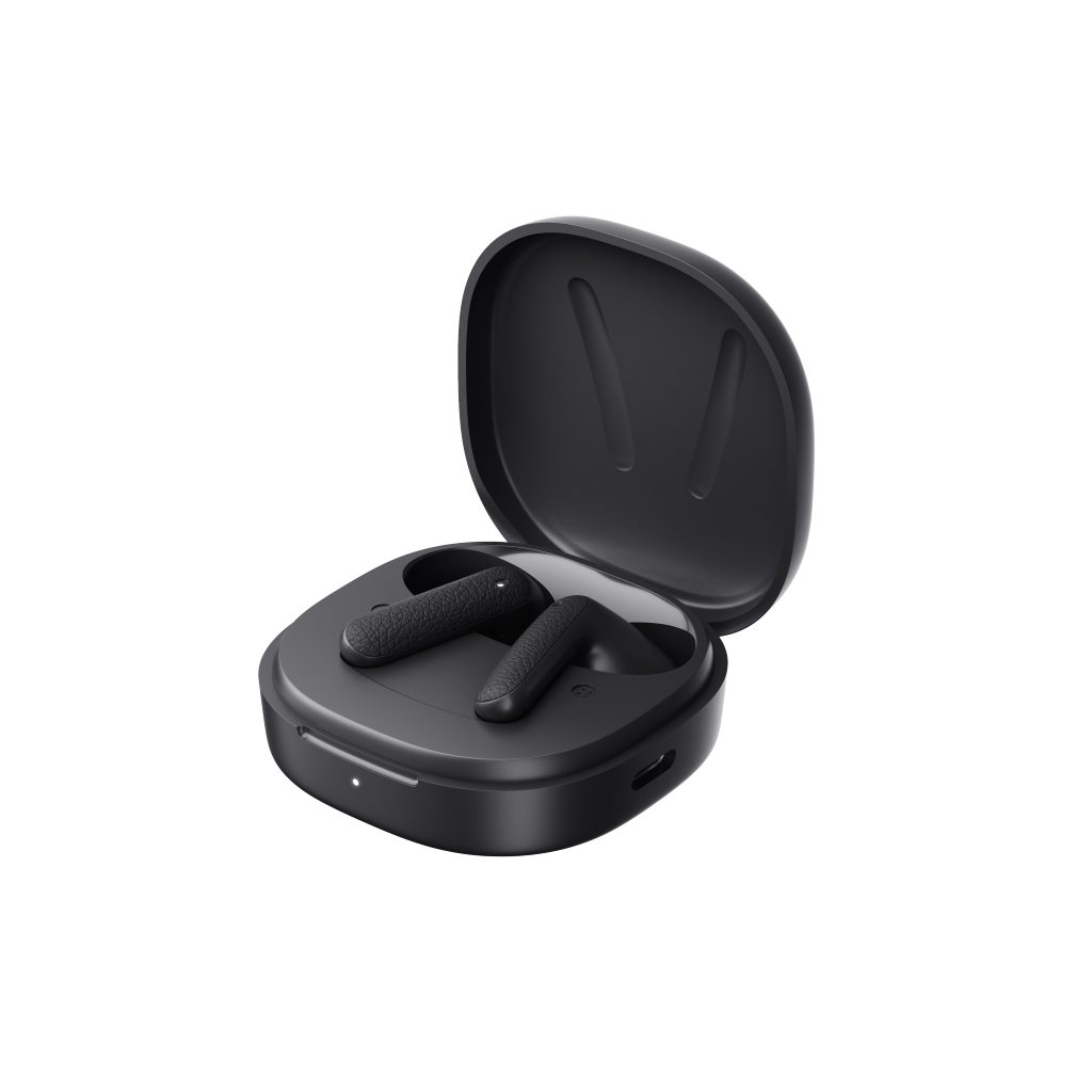 QCY Air Dark Grey Semi-Ear TWS Earbuds, quad Mic ENC multi-point connection, leather grain case
